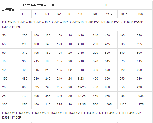 低溫截止閥的型號(hào)有DJ41Y-16、DJ41Y-16C、DJ41Y-16P、DJ41Y-25、DJ41Y-25P、DJ41Y-25R、DJ41Y-40、DJ41Y-40P、DJ41Y-40R、DJ641Y-16C、DJ641Y-25C、DJ641Y-40C、DJ641Y-16P、DJ641Y-25P、DJ641Y-40P、DJ641Y-16R、DJ641Y-25R、DJ641Y-40R、DJ9B41Y-16C、DJ9B41Y-16P、DJ9B41Y-16R、DJ9B41Y-25C、DJ9B41Y-25P、DJ9B41Y-25R、DJ9B41Y-40C、DJ9B41Y-40R、DJ9B41Y-40P等。