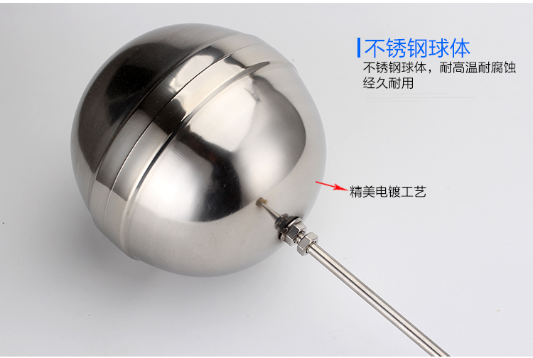 當(dāng)水塔內(nèi)水面下降時(shí),浮球下落,利用水管內(nèi)水的壓力,將閥體里的密封硅膠柱塞打開(kāi),閥體開(kāi)啟供水,當(dāng)水塔水位上升時(shí),浮球上浮,連桿帶動(dòng)柱塞,硅膠體密封進(jìn)水孔,閥體停止供水.