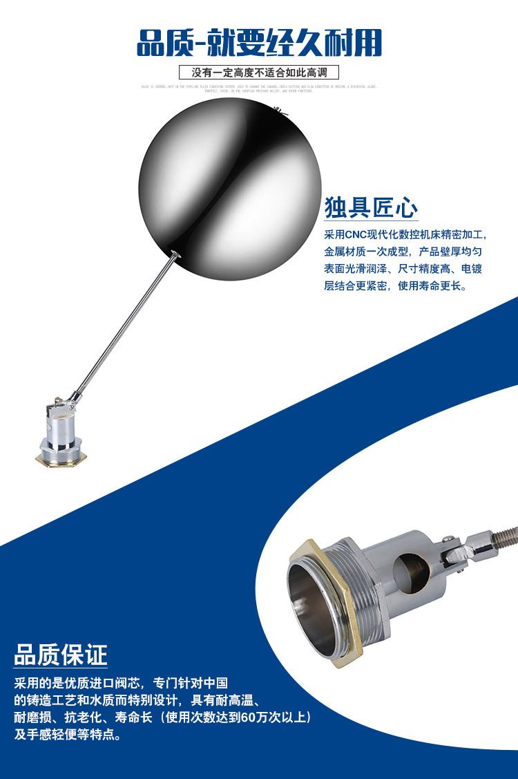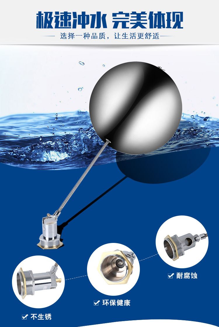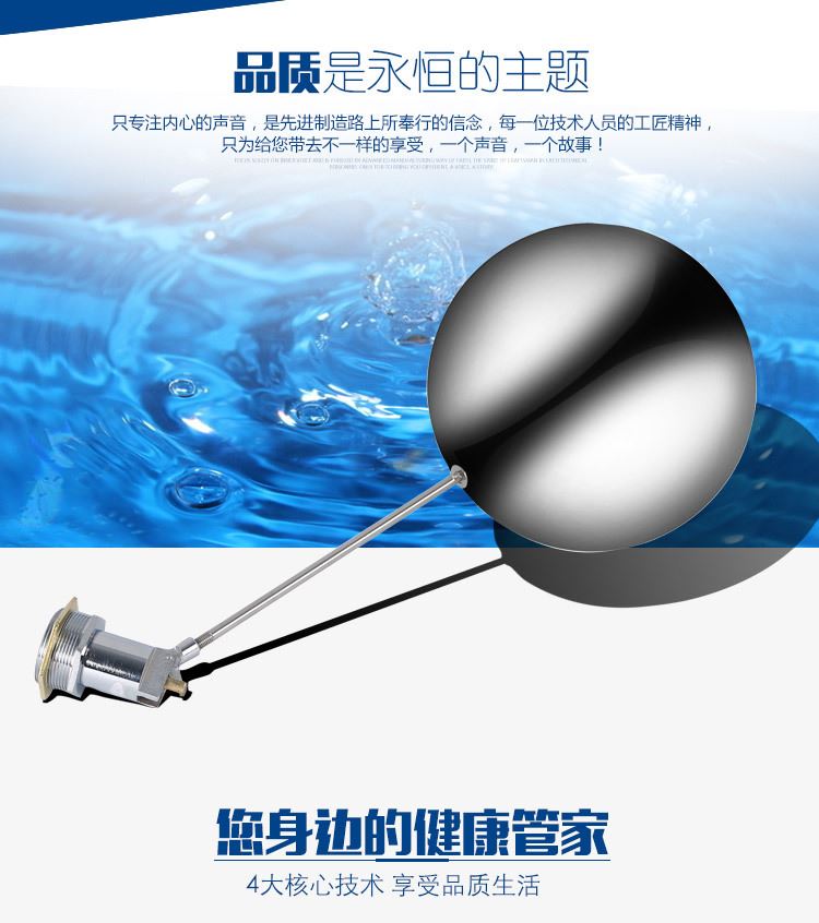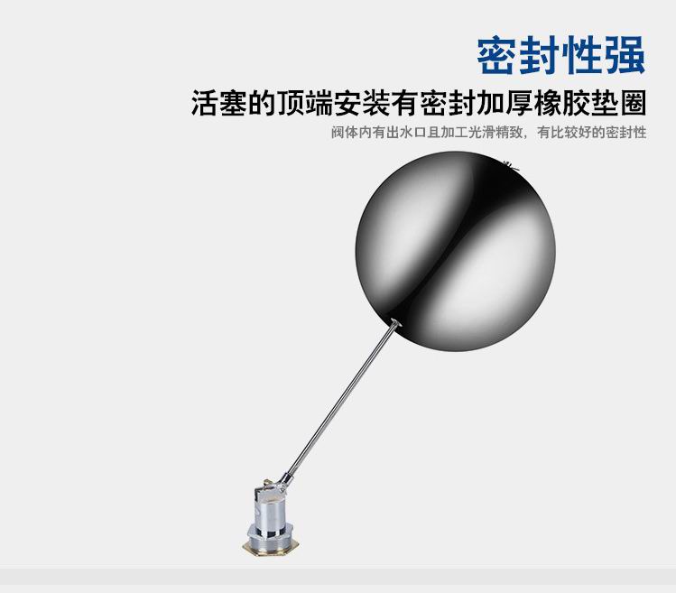 當水塔內(nèi)水面下降時,浮球下落,利用水管內(nèi)水的壓力,將閥體里的密封硅膠柱塞打開,閥體開啟供水,當水塔水位上升時,浮球上浮,連桿帶動柱塞,硅膠體密封進水孔,閥體停止供水.