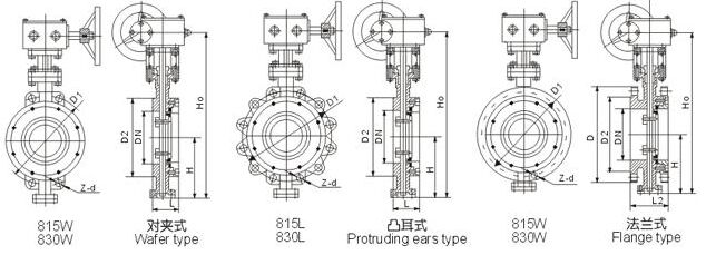 本產(chǎn)品815、830系列蝶閥的主要結(jié)構(gòu)特征為對(duì)夾式和法蘭式三偏心結(jié)構(gòu),而815、830L系列蝶閥的主要結(jié)構(gòu)特征為閥體周邊帶凸耳且設(shè)計(jì)成帶螺孔單法蘭結(jié)構(gòu)。815、830系列蝶閥廣泛應(yīng)用于石油、化工及工業(yè)環(huán)保水處理、高層建筑、給排水等管道上。其特點(diǎn)為:由于采用的是三偏心結(jié)構(gòu),密閉性能可靠,確保開(kāi)啟時(shí)蝶板不接觸密封座,消除了密封座不均勻負(fù)載,延長(zhǎng)了使用壽命、確�?煽康拿芊庑阅�,具有耐高溫、耐磨損、耐腐蝕等優(yōu)點(diǎn)。
